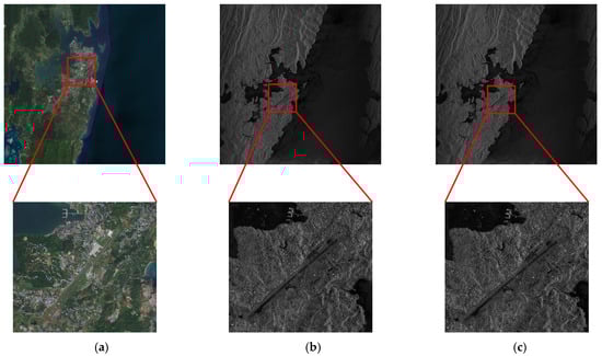 As can be seen from the data in the table above, compared with the imaging processing systems based on other DMA engines, the SAR imaging processing system using the XDMA engine has significantly improved imaging speed and remarkably shortened timeliness in processing image data of the same size. This indicates that the SAR imaging processing system has obvious performance advantages, reflecting that the XDMA engine has greatly improved its working performance while saving a large amount of resources. This is of great significance for the development of on-board real-time processors for spaceborne SAR. In addition, we continued to use the imaging data from Taijing-401 to conduct a complete imaging process test of the system, to ensure that the XDMA engine can guarantee the system’s ability to produce complete and high-quality images. We used SAR echo data from the southern part of India’s Andaman Islands for the test, obtaining the processing results from the FPGA-based SAR imaging system and the imaging simulation results from MATLAB R2020b. We then compared these two results with the optical remote sensing images of the region, as shown in Figure 31.