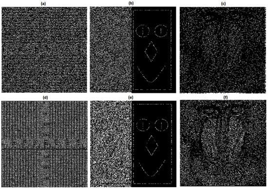 Visual evidence supporting the security of the proposed algorithm is presented in Figure 4a–f, which displays the shares generated by Algorithm 2. Notably, none of these four shares reveal any information regarding the secret image.