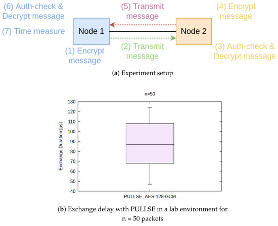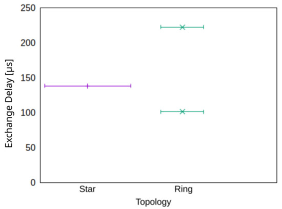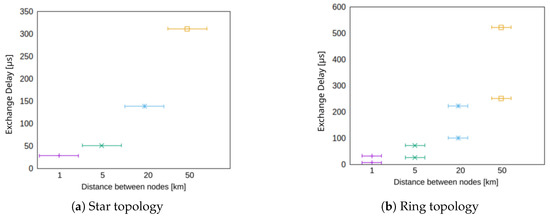 Figure 11b shows that in a laboratory environment, PULLSE allows exchange delays between 47 and 124 μs and a median of less than 90 μs with 50 samples. Assuming a propagation speed of almost 70% of light, the cable length has an effect of around 5 μs per kilometer. For 20 km cable length, the exchange delay would consequently be about 190 μs.