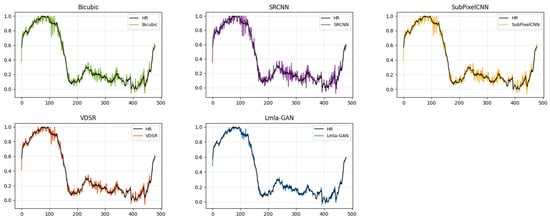 As shown in Table 1 above, the Lmla-GAN model presented in this paper exhibits the highest similarity to the real high-resolution image (HR) in terms of visual effect compared to other classic super-resolution reconstruction models and effectively restores low-resolution images to high-resolution images. As can be seen from Figure 7, the model presented in this paper excels in the super-resolution reconstruction of harmonic voltage data, particularly in terms of detail restoration.