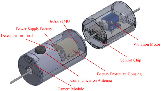 In this paper, according to the line de-icing needs, a resonance de-icing device based on mechanical resonance technology is designed, and its structure is shown in Figure 6 and the physical figure is shown in Figure 7, which shows the structure of the integrated de-icing device, which mainly contains the ice thickness detection module, the vibration module, and the control module.