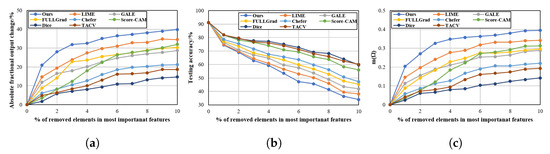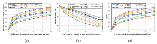 - Hooker, S.; Erhan, D.; Kindermans, P.J.; Kim, B. A benchmark for interpretability methods in deep neural networks. Adv. Neural Inf. Process. Syst. 2019, 32, 9737–9748. [Google Scholar]