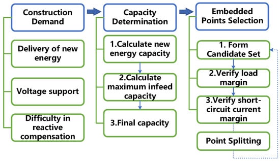The overall planning process under the scenario of new energy delivery is shown in Figure 4. A detailed description is elaborated in Section 4.2.1, Section 4.2.2 and Section 4.2.3.