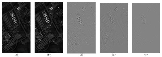Schematic diagram of a band of the PU dataset before and after wavelet transform: (a) original image, (b) low-frequency subband , (c) high-frequency subband , (d) high-frequency subband , and (e) high-frequency subband .