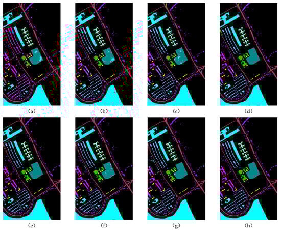 Pavia University dataset visualization results: Figure 10 presents the qualitative comparison of classification maps produced by each method on the PU dataset. Notably, the PU dataset contains a substantial number of small target samples, posing a significant challenge for accurate classification. Benefiting from the upsampling, wavelet transform and multi-scale feature extraction, WTCMC more effectively preserves fine details and object boundaries, leading to marked improvements in the classification of small and subtle structures.