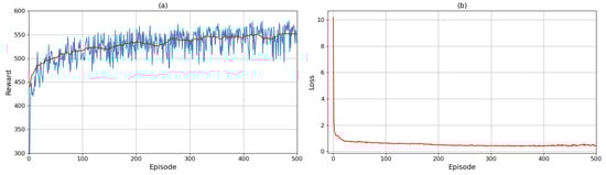 Figure 5 illustrates the convergence of the proposed method through episode reward and loss. The reward values in Figure 5a increase during training and stabilize after 200 episodes, while the loss values in Figure 5b exhibit progressive reduction. These observations validate the proposed method’s convergence.