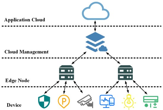 Cloud management platform layer: As a general capability component of the platform independent of the application cloud, this layer focuses on three functions: edge device management, resource scheduling management and cloud edge collaborative control. Task scheduling and offloading decisions are mainly made by this layer, which realizes reasonable task allocation between the “edge” and “management” layers and enhances overall system resource utilization and task response efficiency.