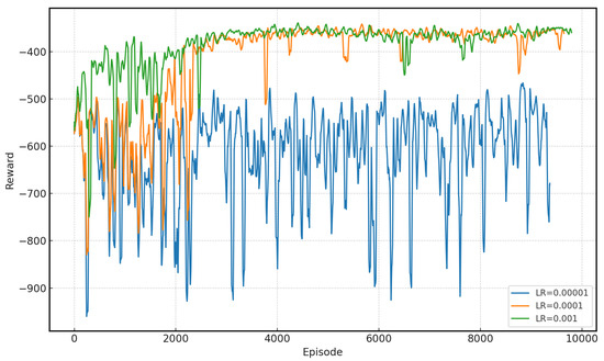 For the remaining hyperparameters, including the discount factor , entropy regularization term coefficient , and GAE hyperparameter , we follow the widely adopted default settings established in PPO literature [34,37]. These values have been consistently validated across diverse tasks and are known to ensure stable and robust performance.