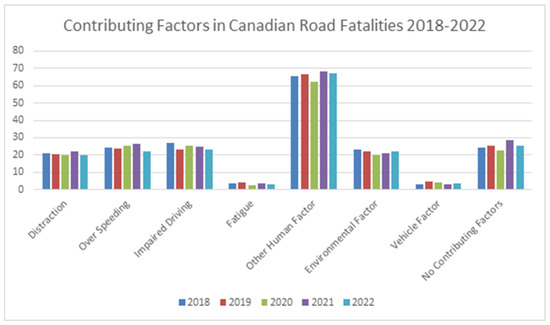 - Transport Canada. Canadian Motor Vehicle Traffic Collision Statistics: 2022. Transport Canada. 2022. Available online: https://tc.canada.ca/en/road-transportation/statistics-data/canadian-motor-vehicle-traffic-collision-statistics-2022 (accessed on 15 December 2024).