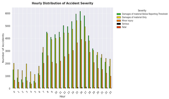 Machine learning and artificial intelligence techniques are increasingly used to predict and classify accident likelihood and severity. Examples of machine learning techniques are classification algorithms (e.g., random forest, neural networks), clustering (e.g., accident type segmentation), and predictive analytics (e.g., crash probability). Frameworks like Scikit-learn, TensorFlow, and PyTorch v2.7.1 are commonly used for predictive modeling. Machine learning methods also facilitate real-time accident prediction based on traffic patterns. Researchers have applied ML models for tasks like driving style classification [47,48,49], hazard scenario identification in non-motorized transport, and distraction studies related to motor vehicle accidents. Some studies have also explored weather-related road safety using logistic regression or traffic accident prediction using regression models [50,51]. Deep neural networks have been utilized to create vehicle dynamics models that predict real-time driving distance and velocity, which can be valuable for autonomous vehicles [52]. Machine learning approaches however face challenges with understanding and interpreting large datasets.