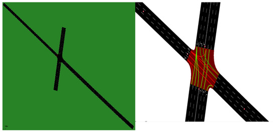 - Lopez, P.A.; Behrisch, M.; Bieker-Walz, L.; Erdmann, J.; Flötteröd, Y.P.; Hilbrich, R.; Lücken, L.; Rummel, J.; Wagner, P.; Wießner, E. Microscopic Traffic Simulation using SUMO. In Proceedings of the 2018 21st International Conference on Intelligent Transportation Systems (ITSC), Maui, HI, USA, 4–7 November 2018; pp. 2575–2582. [Google Scholar] [CrossRef]