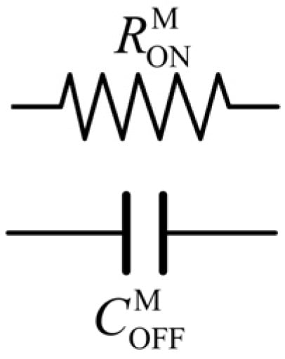For the memristor model, we used the circuit parameters presented in []. The equivalent circuit parameters of the memristor are RONM = 3.6 Ω (for the ON state) and COFFM = 1.4 fF (for the OFF state), see Figure 13, while the PIN diode (MACOM flip-chip diodes MADP-042905, MACOM, Lowell, MA, USA) parameters are given in Figure 5.