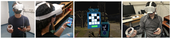 - Zhu, F.; Sousa, M.; Sidenmark, L.; Grossman, T. PhoneInVR: An Evaluation of Spatial Anchoring and Interaction Techniques for Smartphone Usage in Virtual Reality. In Proceedings of the CHI Conference on Human Factors in Computing Systems (CHI’24), Honolulu, HI, USA, 11–16 May 2024. [Google Scholar] [CrossRef]