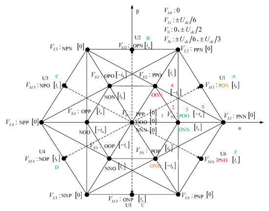 Note: represents the switching state of phases A, B, and C (where P, O, N correspond to 1, 0, −1 respectively).