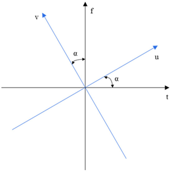 In the time-frequency coordinate system, the Fourier transform is regarded as rotating 90° counterclockwise from the time axis to the frequency axis, and then the FRFT rotates the time domain t-axis counterclockwise to obtain a specific fractional domain u-axis [30], as shown in Figure 6, and then we solve the projection of the t-axis data on the u-axis to obtain the FRFT results of the time data.