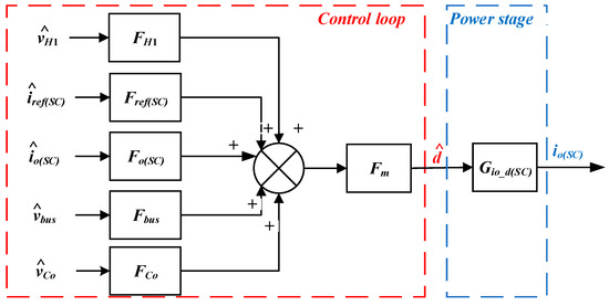 According to Equations (17) and (33), the small-signal representation of the SC converter under the MPC control framework is illustrated in Figure 8.