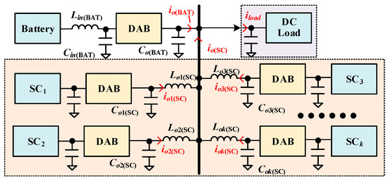 In the above article, the parallel connection of a single SC converter and a battery converter is analyzed. In practical implementations, a multi-module SC energy storage system topology is shown in Figure 14. To ensure power-sharing equilibrium among paralleled SC units, the MPC strategy is proposed for multi-converter parallel operation.