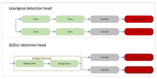Reconstruction of the structural diagram of the detection head. (a) Presents the original detection head. (b) Shows the improved detection head proposed herein.