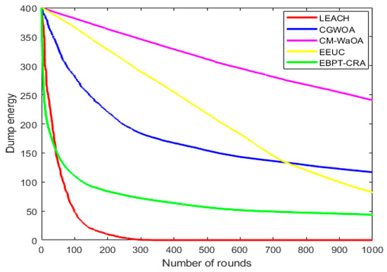 According to the energy drain model, the total energy drained by nodes operating in clustering mode is represented by E 2 , while the energy drained in the direct transmission mode is denoted as E 1 . From Equations (16) and (17), it can be concluded that, for certain nodes, direct transmission incurs a lower energy drain: