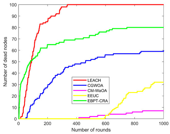 Among the three communication processes in the WSN, the third requires data exchange across the entire network. In this mode, the nodes transmit information not only to the base station but also to other nodes, which leads to the premature death of the nodes [23]. Thus, this study investigates the energy drain of this communication mode.