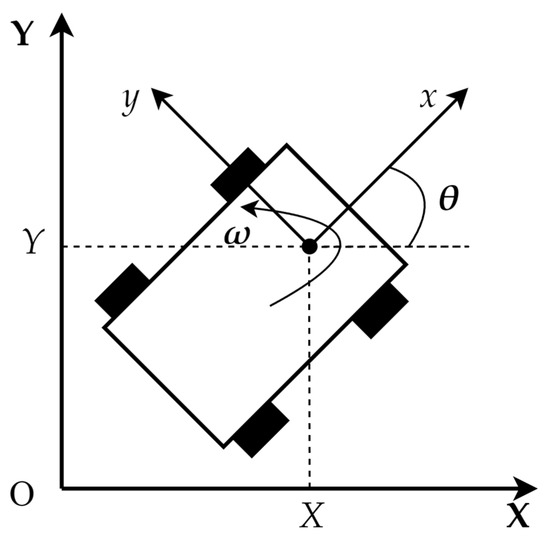 As Figure 1 shows, the forward velocity v and the steering angular velocity ω can be characterized by the following equation:
