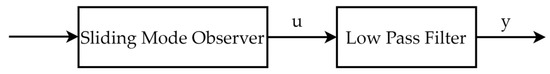 Additionally, a low-pass filter (LPF) is employed to mitigate the chattering phenomenon inherent in the sliding mode observer (SMO). It is designed as shown in Figure 3, and the relationship between input u and output y of LPF is given as