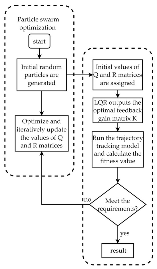 As shown above, the system’s optimal control performance is primarily affected by the weight matrices Q and R. However, there is no fixed pattern for the selection of these two matrices, and it is usually chosen empirically by the designer. Not only is it difficult to ensure that the final output of the optimal feedback control coefficients will lead to a truly optimal system, but the whole process is time-consuming. The adverse effect of subjectivity that arises from relying on experience to determine the optimality of the system can be mitigated by using the PSO algorithm to optimize the weight matrices.