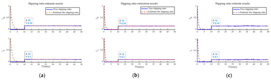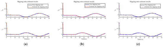 Circular trajectory slipping ratio estimation: (a) conventional LQR (fixedQ R); (b) PSO−optimized LQR; (c) reference [33] method.