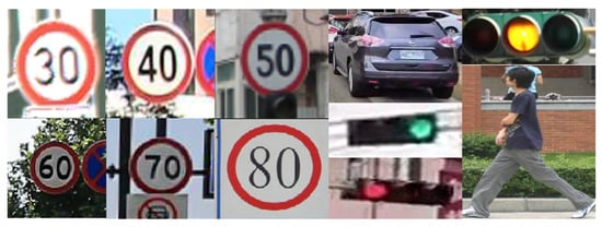 In this study, part of the dataset comes from a large-scale dataset on Kaggle. For the speed limit signs, we adopted images from the German Traffic Sign Recognition Benchmark (GTSRB), which originates from the multi-class, single-image classification challenge held at the International Joint Conference on Neural Networks (IJCNN) in 2011. The GTSRB dataset contains 40 categories and 50,000 images. From this dataset, we selected 411 images and combined them with 2515 self-collected images, resulting in a total of 2926 images. These images include nighttime and rainy-condition scenes, which were subsequently annotated.