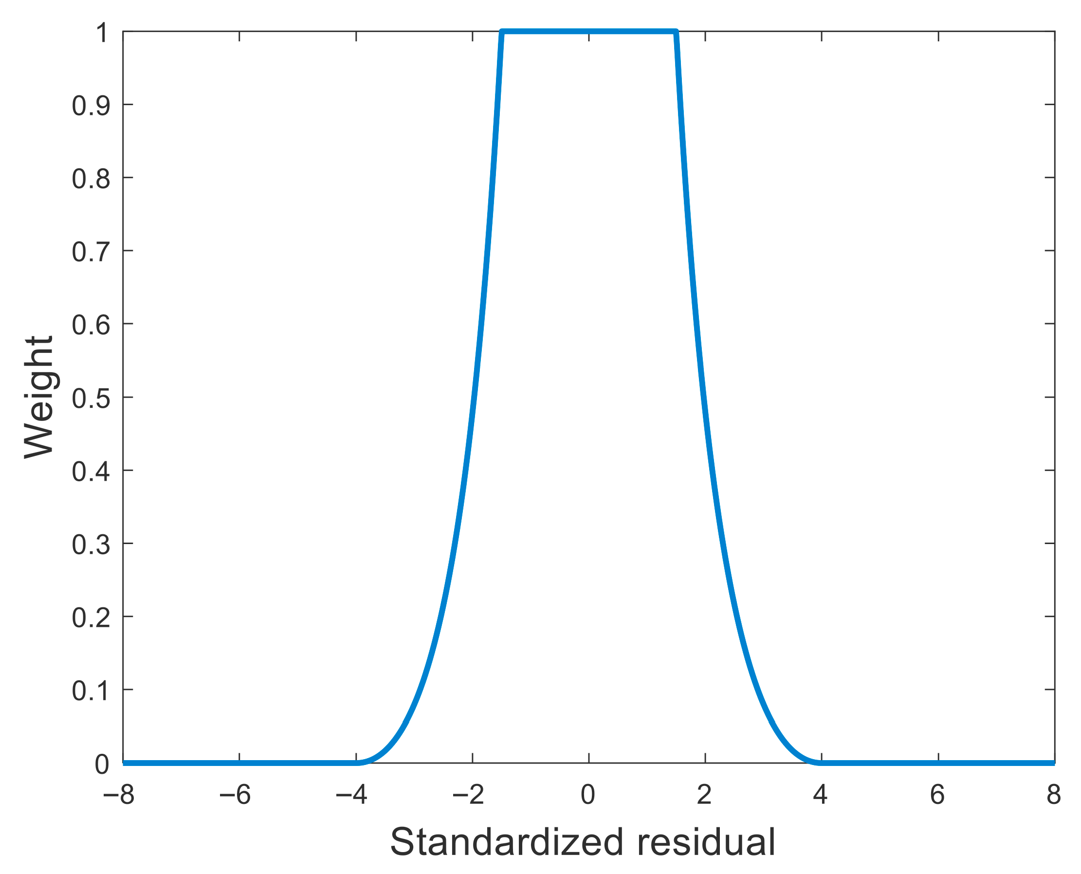 Commonly used equivalent weight functions include the Huber, Tukey, Hampel, Andrews, and IGG-III schemes. A comparison of these equivalent weight functions is presented in the table below [