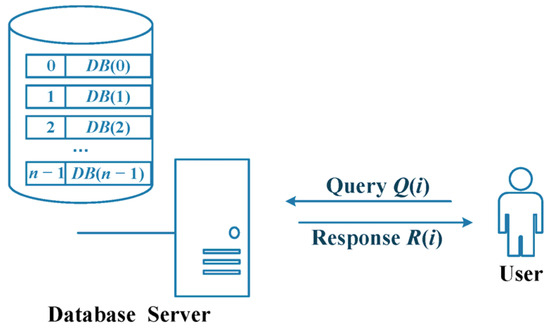 A typical single-server PIR scheme usually includes two entities, the user and the database server, as shown in Figure 1.