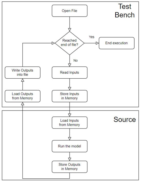 The initial C description of the CNN model in Vitis HLS had the data variables in floating-point representation. However, to have better execution time and simpler hardware blocks (such as multipliers and adders), the floating-point representation was converted into a fixed-point representation. The downside of this representation is that it has a limited range and less precision than the floating-point representation, which may result in output errors. Therefore, a study was performed, where the number of bits required for the fixed-point representation was evaluated. This study helped to understand the tradeoff between the resources needed and the network model’s accuracy. If fewer bits are used, the resources needed are reduced, but the network model accuracy also decreases.