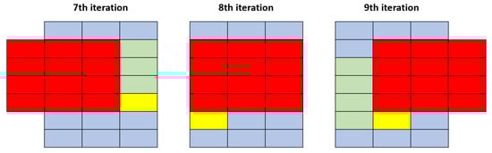 Figure 5, and goes through the same values as before so the code can reuse those values. It only needs to have a 3 × 4 matrix with the values of the kernel at that moment and load a new value per iteration. This is a way to reduce the number of loads per iteration. Before, there were either 20 or 24 loads only in one iteration (12 for the kernel and 10 to 12 for the input data). Now the input data only needs one load per iteration and the kernel none because it is the same for all the input data. The only time this does not happen is in the beginning because it is necessary to load at least 11 values of the input data and all the 12 values of the kernel, and when the kernel changes, it is necessary to load all the 12 values again for the new kernel.