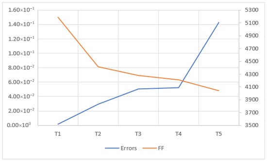 Figure 6, where it is possible to see the error increase, while the number of FFs decrease.