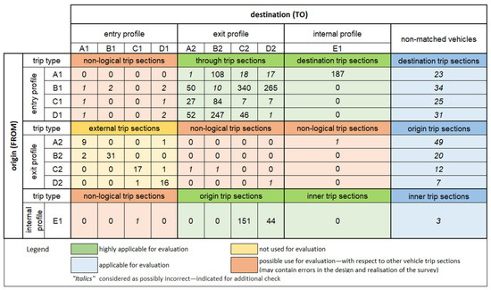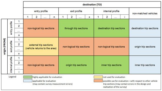 | Matched and non-matched license plates | Count; ratio. | In the entire area; in measuring profiles; in measuring sites. | [6,70,71] |