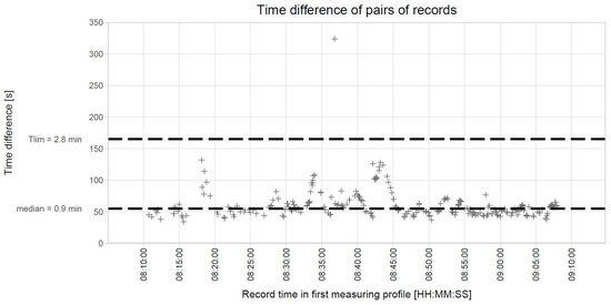 | [20] | Data source: 5.5 h of data from two neighboring intersections (Langfang, China). Evaluated traffic parameters: cumulative arrival/departure curve, queue length. Evaluation procedure: arrival/departure curve reconstruction process and queue length evaluation are described. Data quality issues: recognition errors which prevent data matching are discussed, a method of arrival curve interpolation is proposed to mitigate the negative impact of recognition errors. | Ref. [20] is focused on evaluation of data from two neighboring signalized intersections, with a single specific purpose. The contribution of our paper is in designing a comprehensive approach for evaluation of LPR data from various areas (typically from traffic networks sparsely—or not at all—equipped with sensors) in order to evaluate various traffic parameters. The proposed approach also addresses the possibility of identifying lower-quality data not only at the beginning of data evaluation, but also in specific steps during the evaluation procedure (e.g., matrix of matched data). |