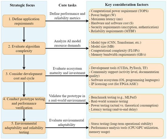 When selecting an EAI hardware platform, it is necessary to comprehensively consider application requirements, algorithm complexity, and development cost and cycle, and to ultimately determine the most suitable solution through prototype verification and performance testing [33,75].