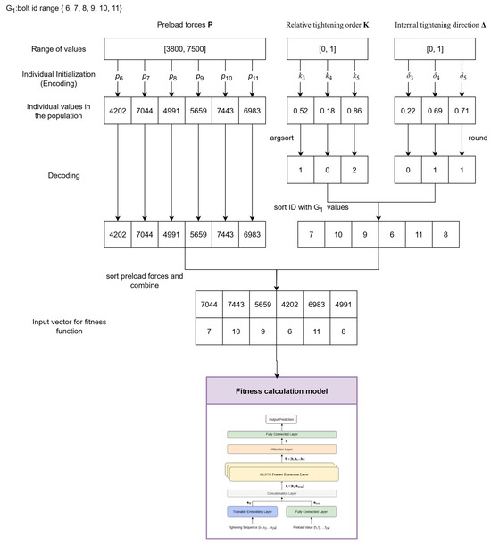 For the input features (bolt ID and preload) at each time step, the model first maps them into a unified high-dimensional feature space via a hybrid embedding layer. The discrete bolt ID is converted into a dense vector using a trainable embedding layer, allowing the model to learn the underlying relationships (e.g., symmetry) between different bolts autonomously. The continuous preload value is projected into a vector using a fully connected layer. Finally, the two vectors are concatenated to form a fused feature vector for the time step, , which serves as the input for subsequent layers.