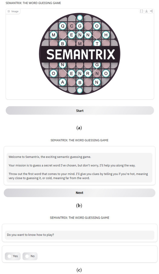 Regarding reproducibility and open science, the deployment on Hugging Face Spaces allows our semantic game to remain version-controlled and openly accessible, supporting independent review, reuse, and further extension by the research community. Additionally, Gradio’s integration with the Hugging Face model repository and backend infrastructure simplifies the technical implementation and ensures that the interface components are closely aligned with the underlying model resources.