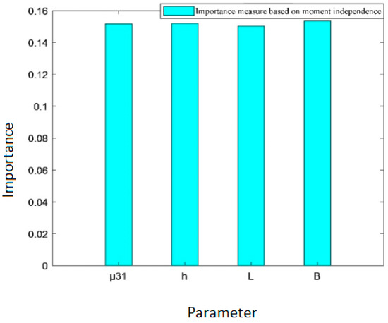 Sensitivity analysis is a method for assessing the changes in response characteristics resulting from variations in design variables or parameters [18,19,20,21], which has been extensively applied in reliability analysis, risk analysis, environmental science engineering and other fields [22,23,24,25]. By investigating the critical parameters, the complexity of the problem can be significantly mitigated during the process of structural optimization and computation, thereby minimizing the computational cost. Sensitivity analysis is mainly divided into two categories: local sensitivity analysis and global sensitivity analysis. Local sensitivity can only reflect the impact of input variable changes on output response at a fixed value and is therefore subject to significant limitations [26]. Global sensitivity analysis, also referred to as importance measure analysis, encompasses methods based on variance, moment independence, and correlation coefficients [27,28,29,30]. It quantifies the combined influence of input parameters on output by changing all parameters at the same time. As a result, this method is more widely applied in practical engineering.