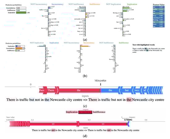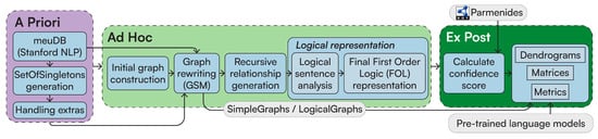 To address the former limitations, we propose LaSSI, which is an instance of the General, Explainable, and Verified Artificial Intelligence (GEVAI) framework (Section 2.1) providing modular phases. After addressing discourse integration in the a priori phase concerning entity recognition and semantic ambiguity through entity type association, the ad hoc phase applies derivational and declarative rules (when possible) to transform full-text representations into final logical formulae. While doing so, we further address discourse integration through pronoun resolution ([], Supplement X.5) and address ambiguities from the generated Universal Dependency (UD) parsing by exploiting syntactic and morphological information through our proposed Upper Ontology—Parmenides. Finally, the ex post phase explains sentences’ logical entailment by providing a confidence score as a result of reasoning paraconsistently over Parmenides for semantic information, while plotting the reasoning outcomes graphically (Section 5.3). We also offer a pipeline ablation study for testing the different stages of discourse integration (Section 5.2) and compare our explainers to other textual explainers (SHAP and LIME) using state-of-the-art methodologies to tokenise text and correlate it with the predicted class (Section 5.3). Last, we draw our conclusions and indicate some future research directions (Section 6). The datasets for this paper are available online (https://osf.io/g5k9q/; accessed on 14 May 2025). We explain further concepts of the paper in our technical report [].