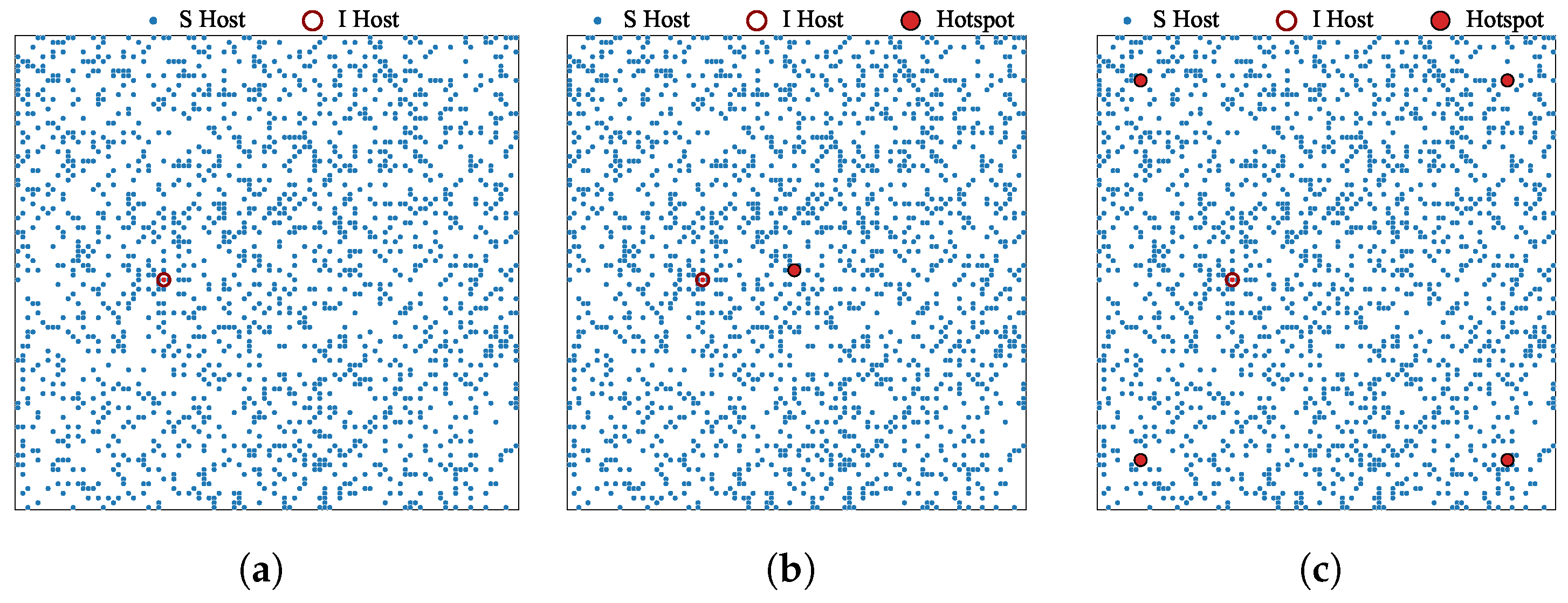 Miura, H.; Kimura, T.; Hirata, K. Modeling of Malware Propagation in Wireless Mobile Networks with Hotspots Considering the Movement of Mobile Clients Based on Cosine Similarity. Electronics 2025, 14, 3528. https://doi.org/10.3390/electronics14173528