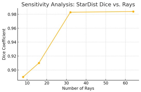 Sensitivity analysis of StarDist performance versus number of rays.
