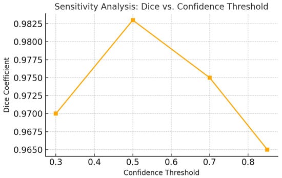 Furthermore, we examine the sensitivity of segmentation accuracy to confidence thresholds and analyze how model performance degrades under stricter detection criteria. Evaluation metrics include Dice coefficient, Intersection over Union (IoU), precision, recall, accuracy, and panoptic quality (PQ) [3,4].