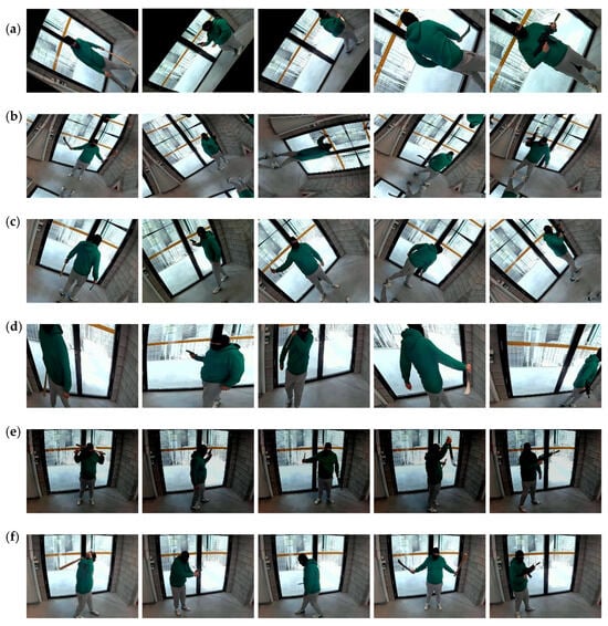 Examples of transformations performed during augmentation of a self-prepared dataset: (a) affine transformations; (b) safe rotate; (c) shift scale rotate; (d) perspective; (e) random brightness; (f) Gaussian blur.