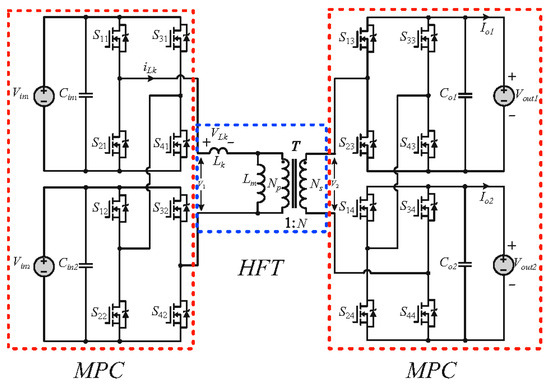 The HFL voltages shown in Figure 2 can be expressed using the Fourier series representation. For the proposed MAB converter, the primary and secondary voltages can be formulated as follows: