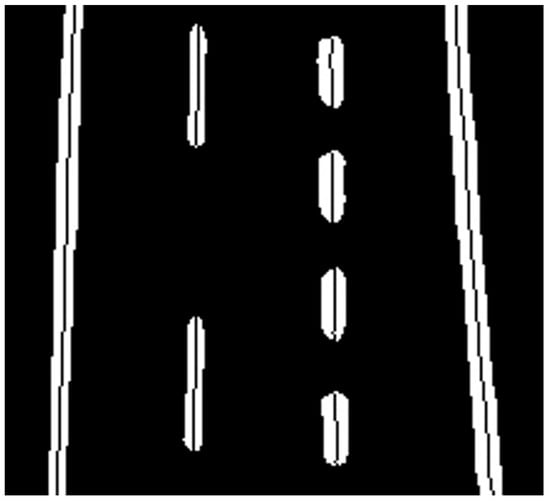 Here, the points (x, y) on the skeleton line are substituted into Equation (2) to form a system of equations. The least-squares solution for (c0, c1, c2) yields the lane marking’s fitted parameters.
