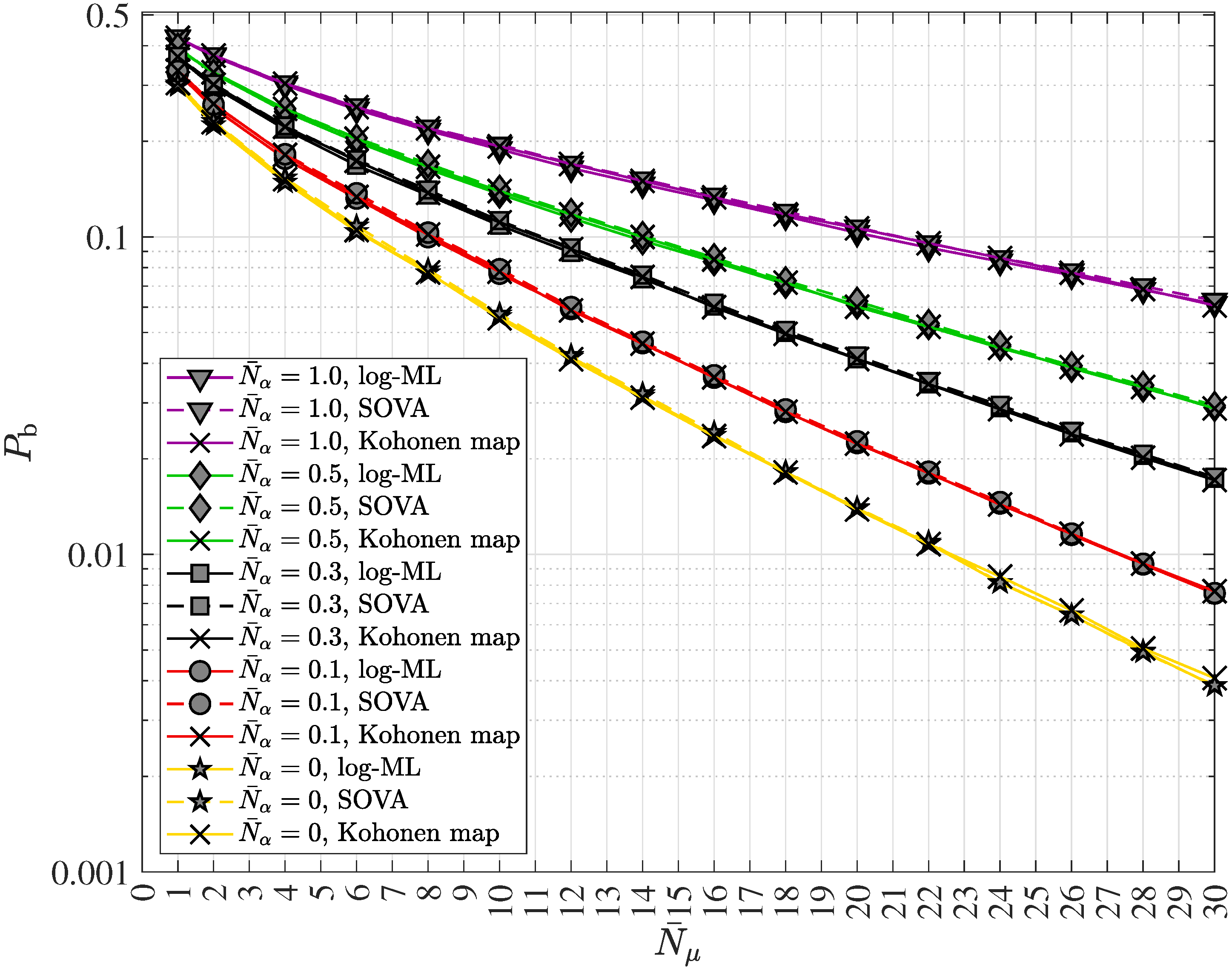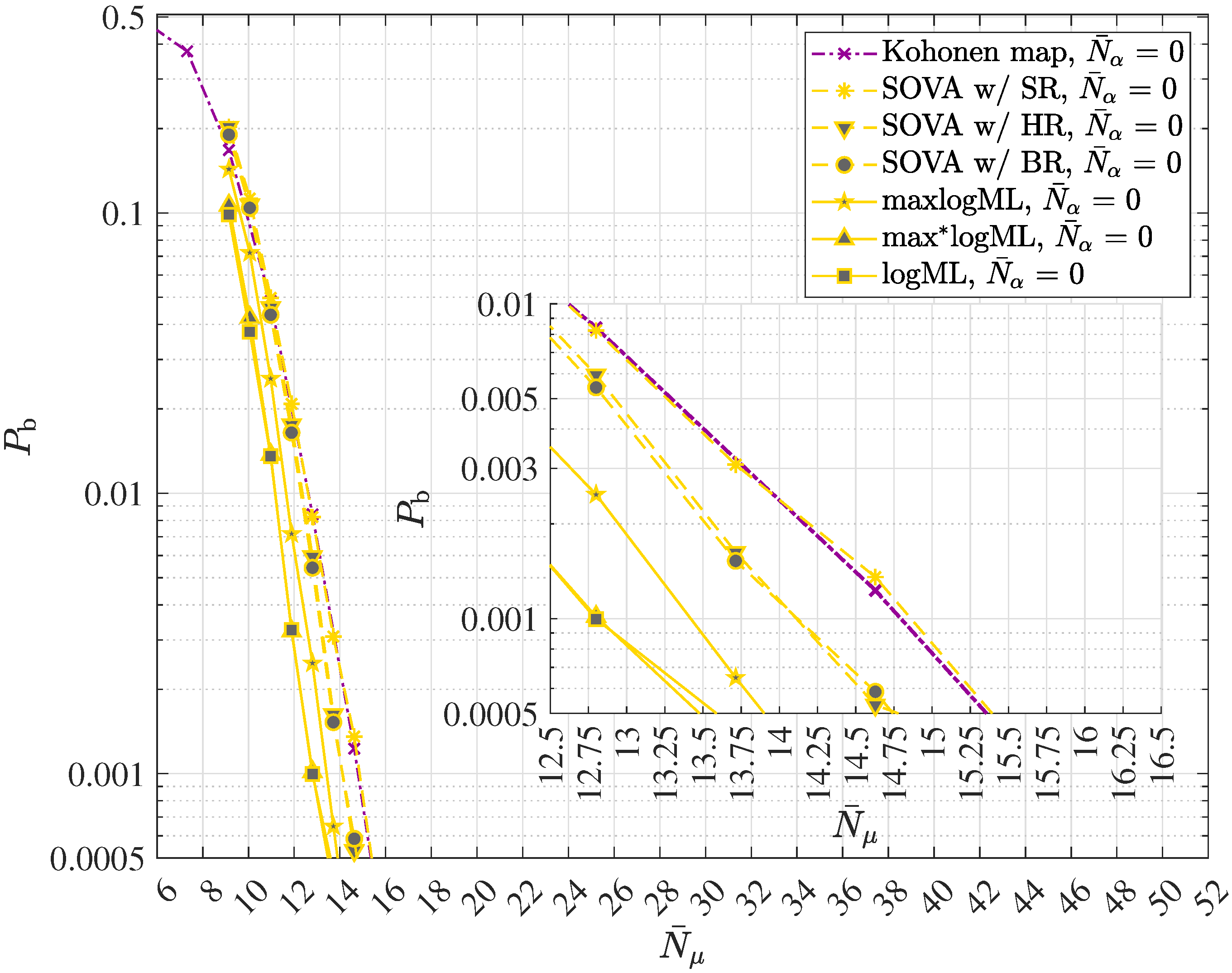 - Abdel Rehim, F.; Jung, P. Kohonen maps based near optimum sequence detection. In Proceedings of the IEEE International Mediterranean Conference on Communications and Networking (MeditCom), Nice, France, 7–10 July 2025. [Google Scholar]