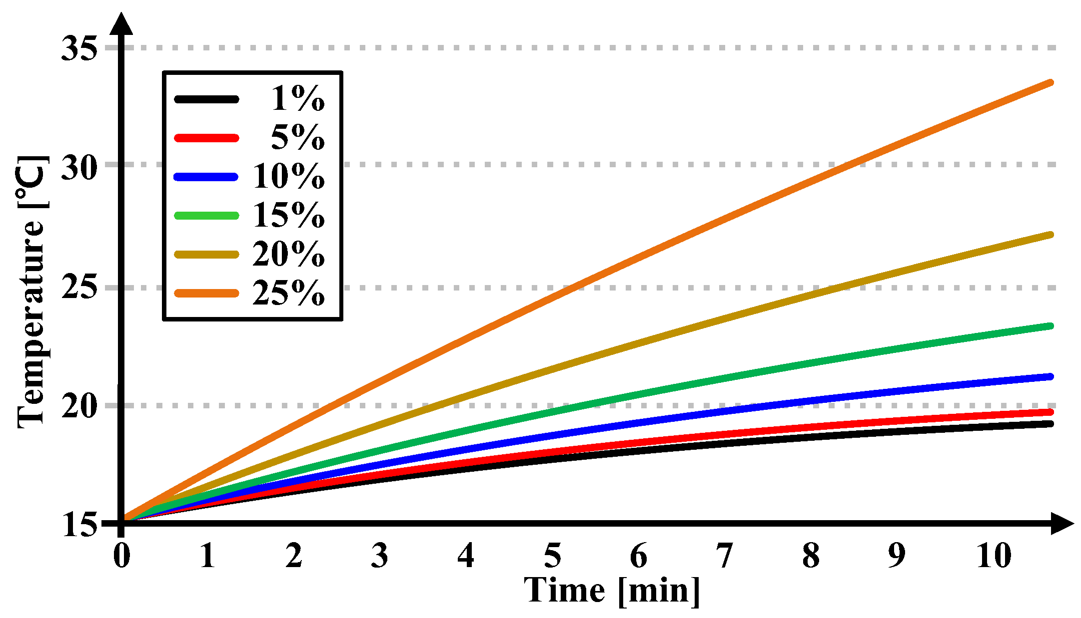 Figure 12, the battery temperature exhibited a gradual increase over time during charging, and it was experimentally confirmed that the rate of temperature rise becomes more substantial as the current ripple magnitude increases. These findings emphasize the critical importance of maintaining an appropriate temperature range during charging to enhance battery longevity and utilization. The proposed ripple-based thermal control strategy demonstrates its effectiveness in achieving this objective.