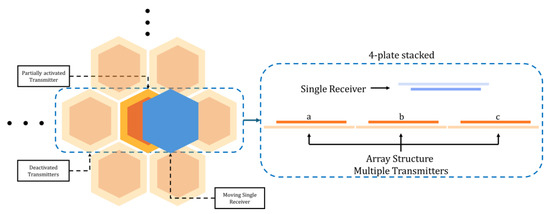 The MISO ER-WPT coupler is designed to maximize electric field coupling efficiency. Coupling strength increases with the overlapping area of corresponding metal plates in transmitter and receiver units. For MIMO systems, the coupler must ensure sufficient overlap regardless of receiver position and maintain uniform electromagnetic characteristics under arbitrary misalignment. The hexagonal plate structure satisfies these requirements.